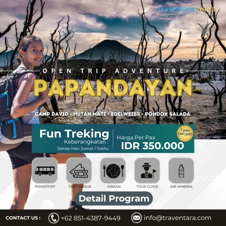Buat kamu yang berdomisili di Jakarta atau sekitarnya, Traventara menyediakan meeting point langsung dari Jakarta. Jadi kamu bisa berangkat bareng rombongan sejak awal perjalanan. Cocok buat yang pengen suasana kebersamaan dari titik keberangkatan, plus lebih praktis karena semua transportasi sudah diatur.