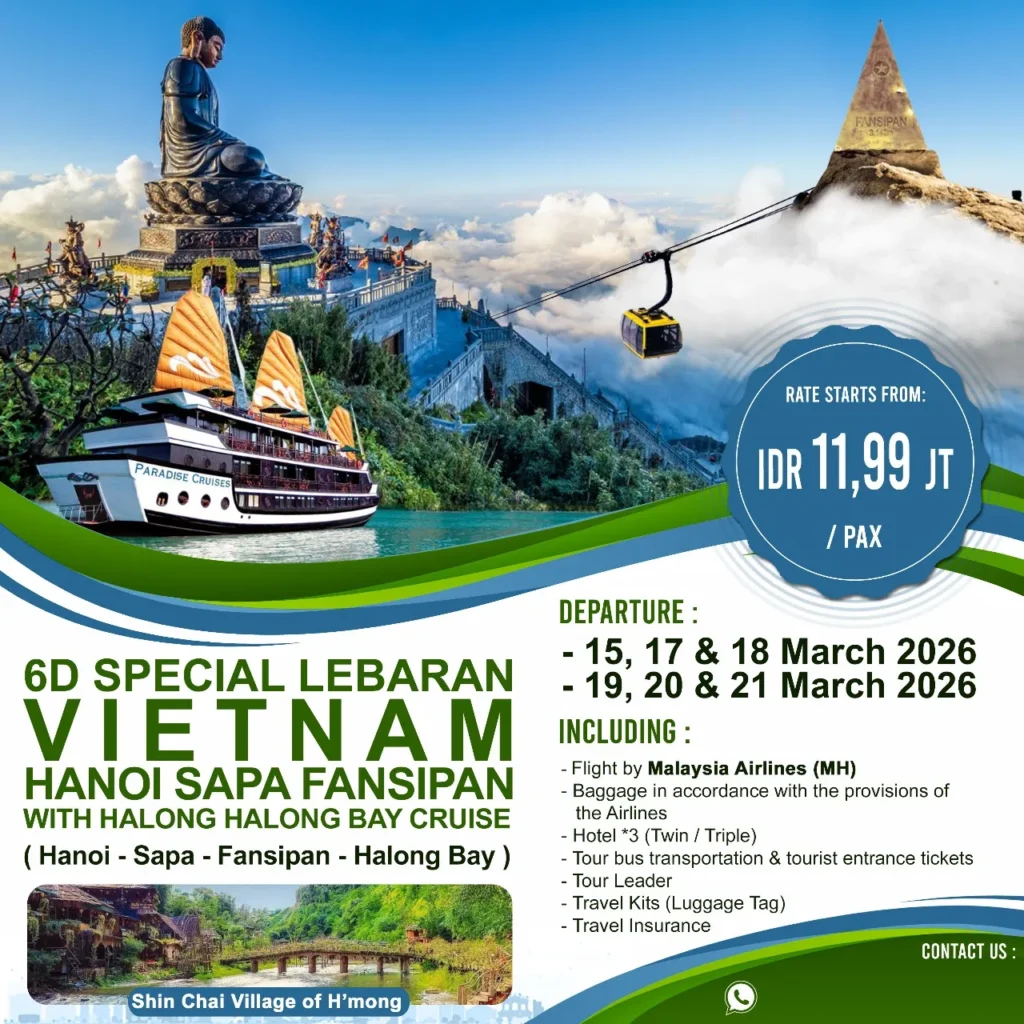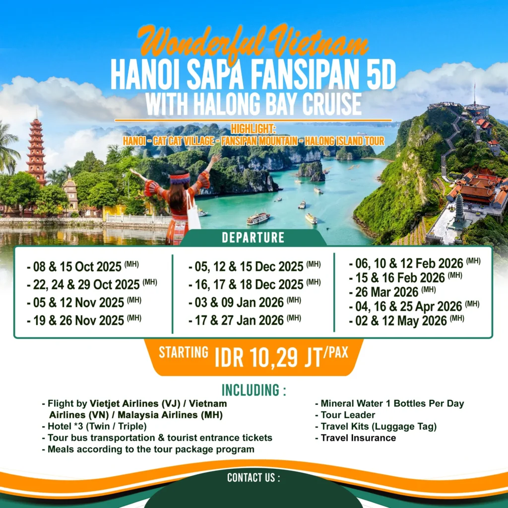 Vietnam OPEN TRIP / SIC / KONSORSIUM TOUR / 2PAX CAN JOIN / SCHEDULED TOUR 6D Vietnam Lebaran HANOI – SAPA – FANSIPAN – HALONG BAY OPEN TRIP / SIC / KONSORSIUM TOUR / 2PAX CAN JOIN / SCHEDULED TOUR 5D Wonderful Vietnam HANOI – SAPA – FANSIPAN – HALONG BAY CRUISE OPEN TRIP / SIC / KONSORSIUM TOUR / 2PAX CAN JOIN / SCHEDULED TOUR 5D4N Amazing Danang DANANG – HUE – BANA HILLS